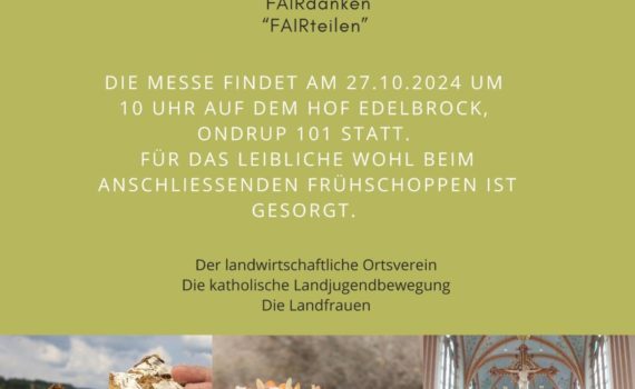 Am 26.10.2025 um 10 Uhr findet der diesjährige Erntedankgottesdienst in der St. Dionysius Kirche in Seppenrade statt. Der landwirtschaftliche Ortsverein, die Landfrauen sowie wir als Landjugend Seppenrade laden herzlich hierzu ein.